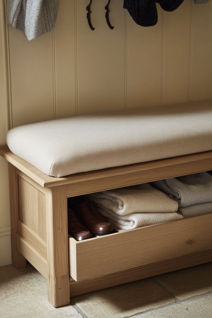 Choose from bench styles—wooden, upholstered, or with fabric covers—based on your decor. Opt for benches with lift-up seats or drawers for extra storage. For small spaces, a narrow or wall-mounted bench works well. Decorate with throw pillows or textured fabrics to match your aesthetic. It’s adaptable for bedrooms, dressing rooms, or even entryways.