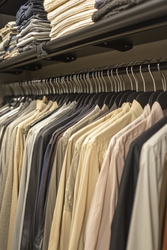 Visualize your wardrobe arranged by shades—blues, reds, neutrals—each section clearly labeled or naturally separated. The color flow creates a pleasing aesthetic, almost like a gradient palette. Seeing your clothes organized by hue makes it easier to coordinate outfits and plan your looks. It transforms your closet into a visual masterpiece.