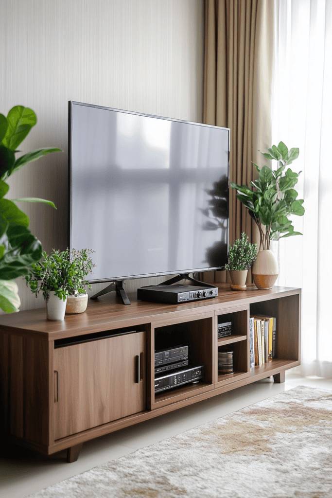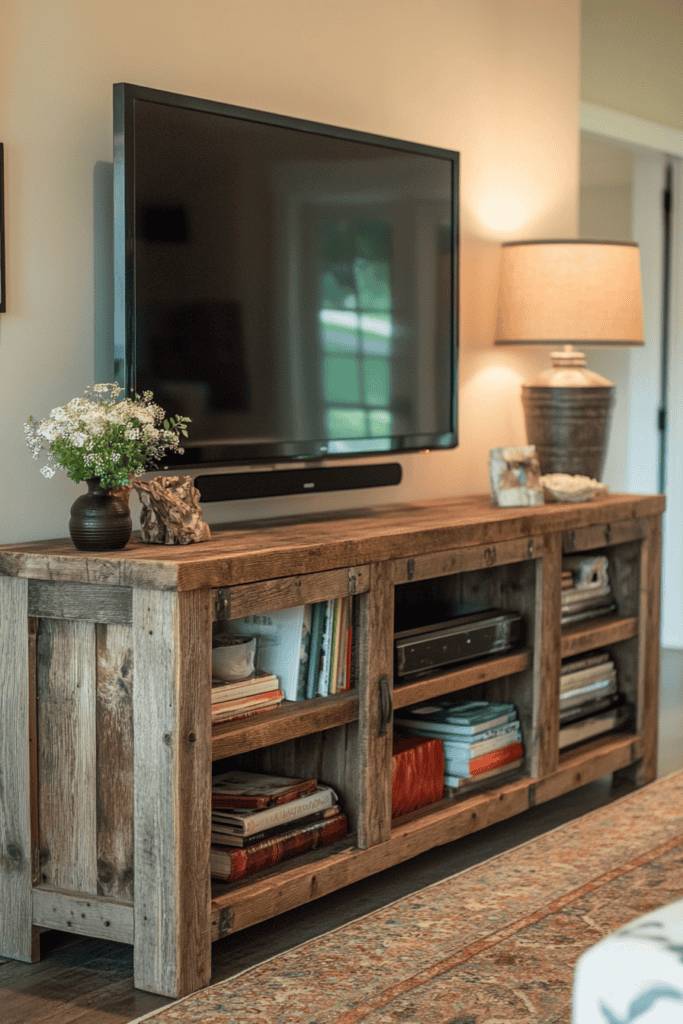 One of the best aspects of a rustic wood TV stand is its versatility. It complements various decor styles, seamlessly blending with both traditional and contemporary interiors. Plus, the ample storage options—like open shelves and hidden compartments—make it easy to keep your media accessories organized.