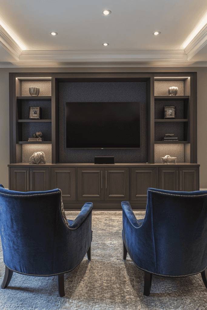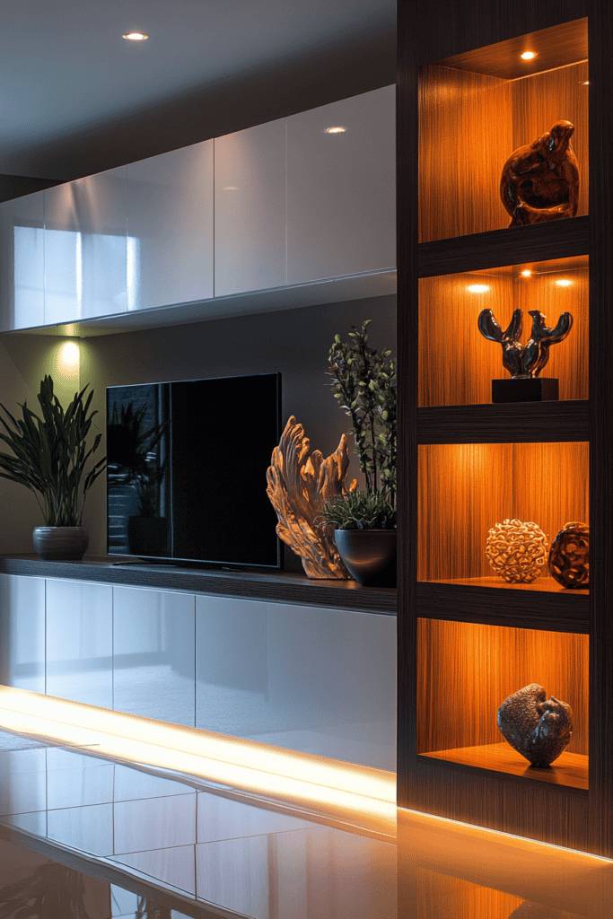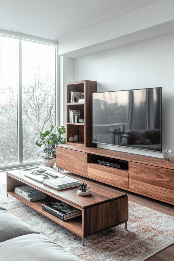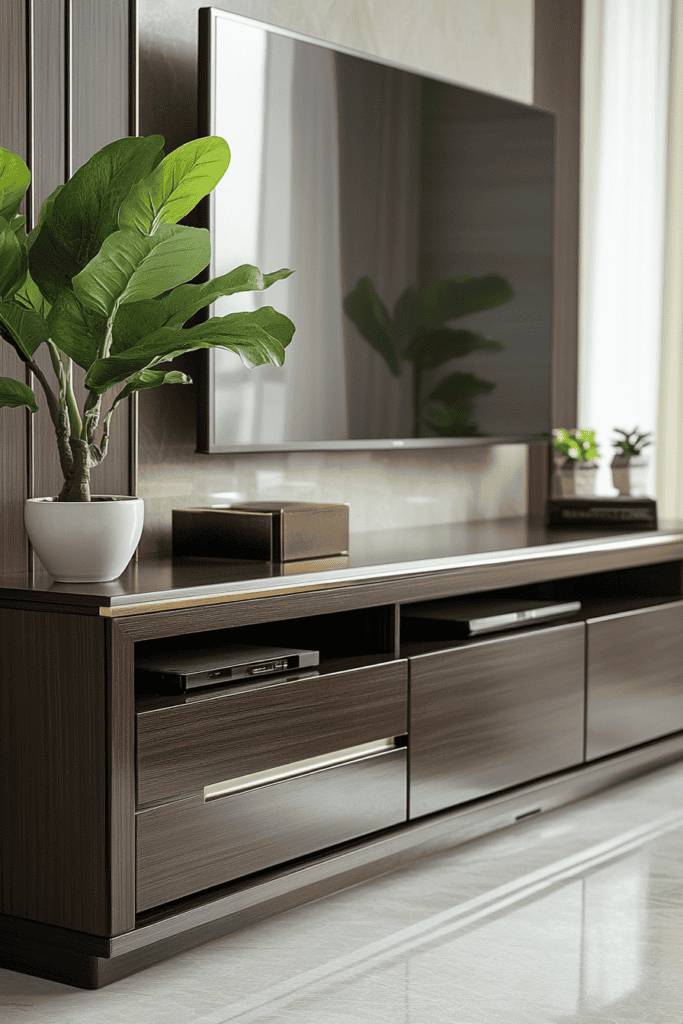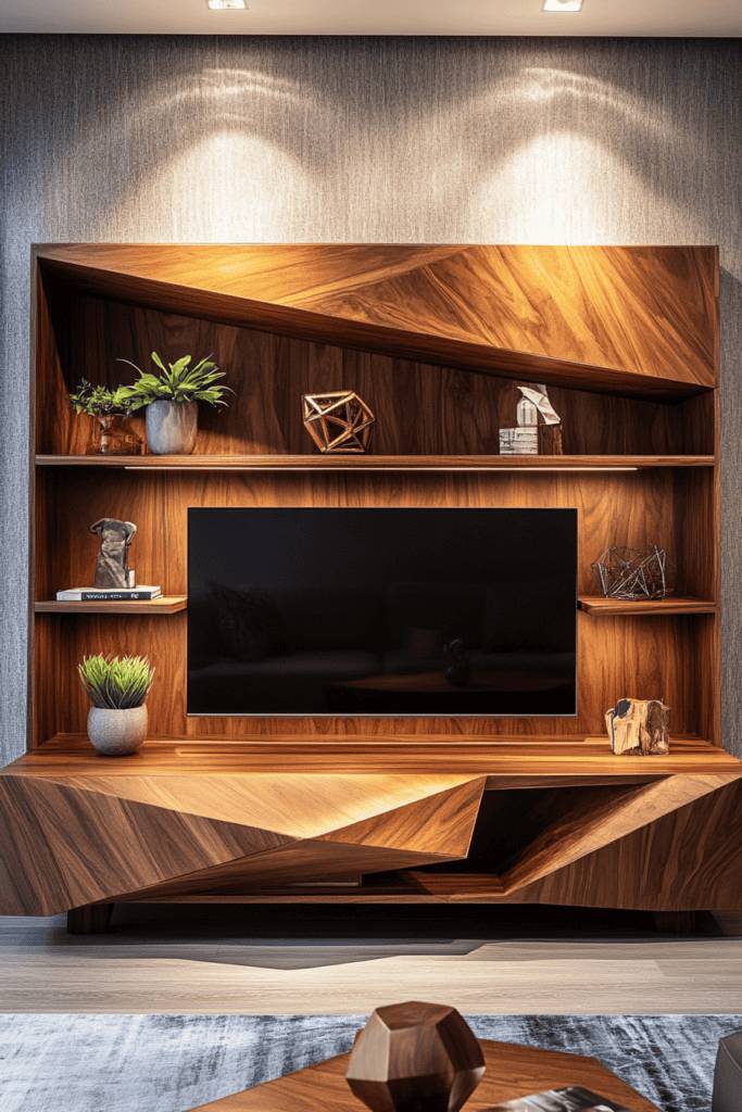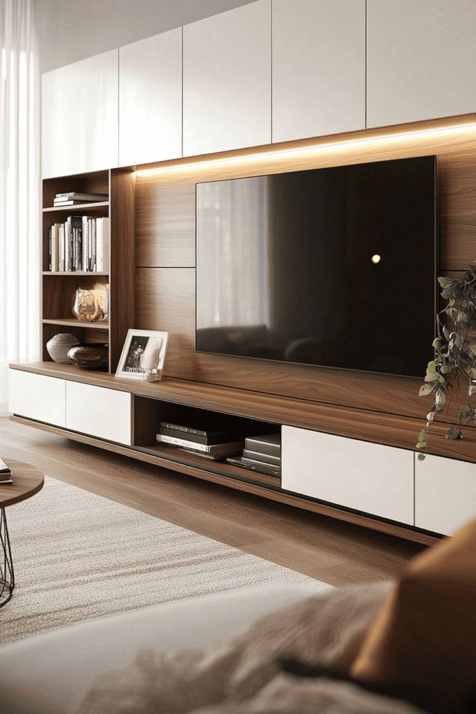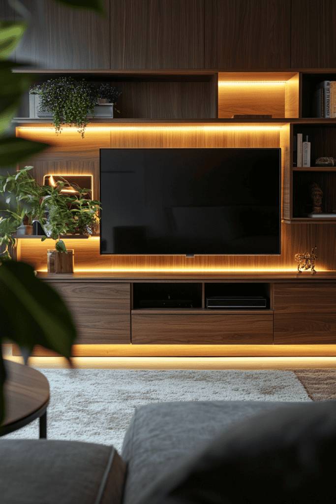 Not only do they serve as a bold statement piece, but they also provide functional storage solutions. Look for options with open shelves or built-in cabinets, perfect for keeping your media devices and accessories organized yet accessible.