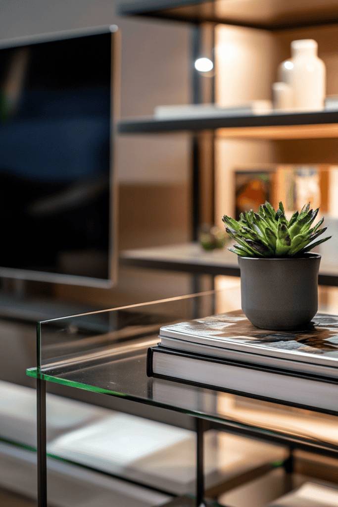When you’re looking to add a contemporary touch to your living space, a glass and metal TV stand can be a stunning choice. This sleek design blends transparency with industrial flair, creating a light and airy feel in your room. The glass surface showcases your entertainment equipment while allowing light to flow, making your space feel larger.