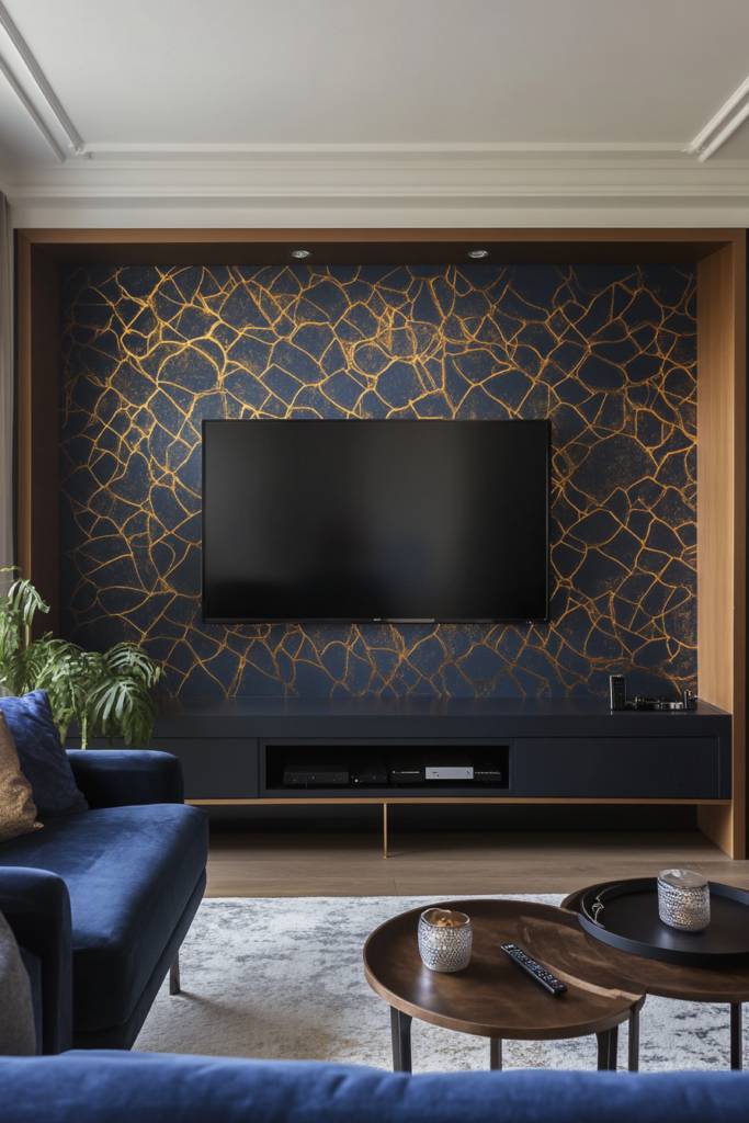 You could also explore geometric designs for a modern edge or metallic finishes that catch the light and draw attention. By strategically placing these panels around your TV, you not only frame the television beautifully but also create a focal point that enhances the entire room.