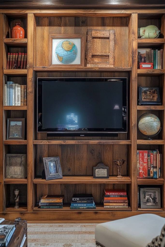 Creating a vintage inspired display for your TV wall can transport you to a different era, infusing your space with warmth and character. Start with a beautifully distressed wooden frame that surrounds your television, reminiscent of classic designs. Layer your display with antique books, vintage trinkets, and framed black-and-white photos to evoke nostalgia.