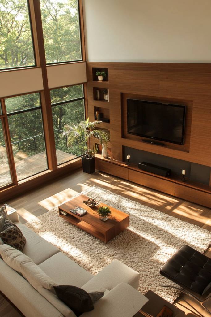 To achieve that rustic charm, consider using barn wood or driftwood, which not only adds personality but also tells a story. Pair your wall with earthy colors in your furnishings, and allow natural light to highlight the grain of the wood. This combination creates a harmonious balance, making your living space feel both stylish and welcoming. With a rustic wood accent wall, you transform an ordinary area into a haven of comfort, perfect for relaxing evenings in front of the TV.