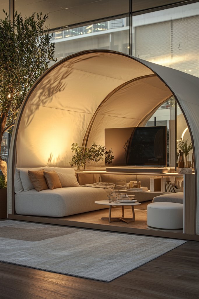 This intimate setting not only harmonizes technology with design but also transforms your viewing experience into something truly special. You’ll find yourself retreating to this cozy nook time and time again.