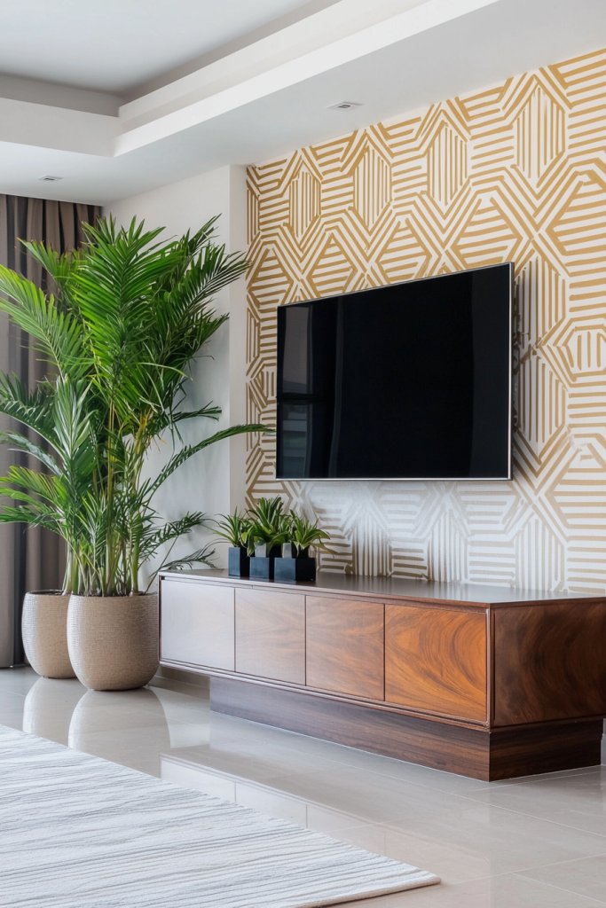 While a sleek wall-mounted TV can elevate your entertainment space, adding statement wallpaper as a backdrop transforms the entire aesthetic. Imagine your TV framed by a bold geometric pattern or a lush botanical design that draws the eye and sparks conversation.