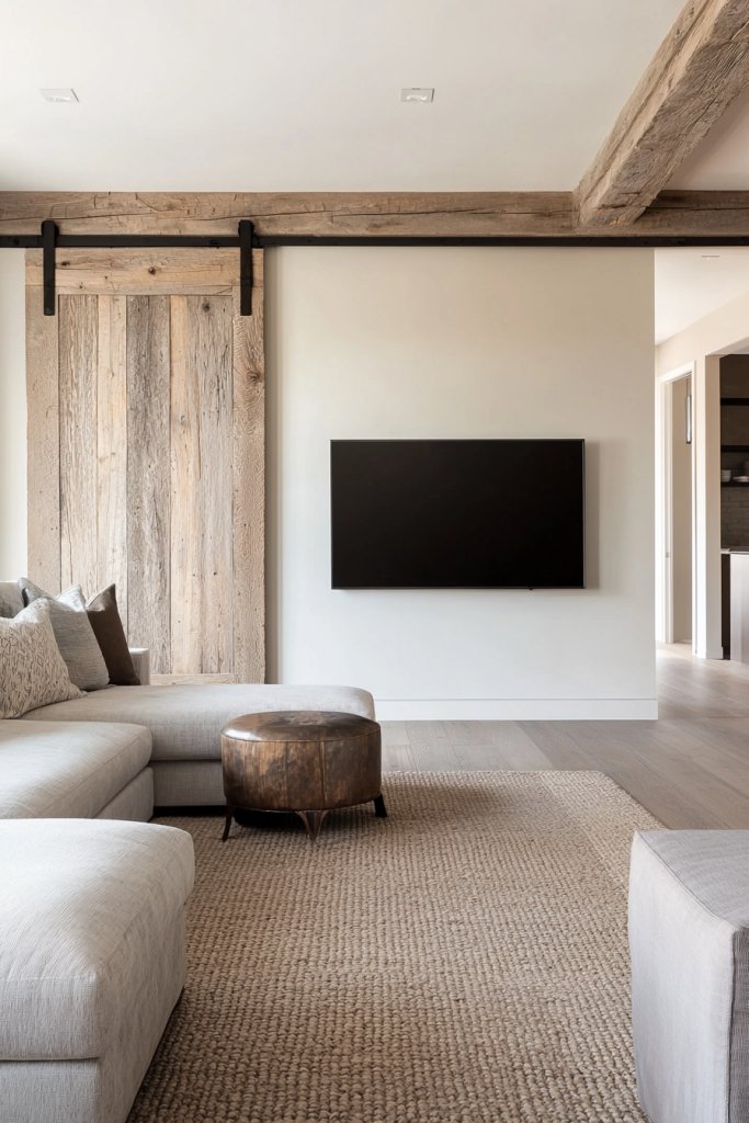 • Use sliding panels or rustic barn doors to conceal the TV, enhancing aesthetics while minimizing distractions in the living space.