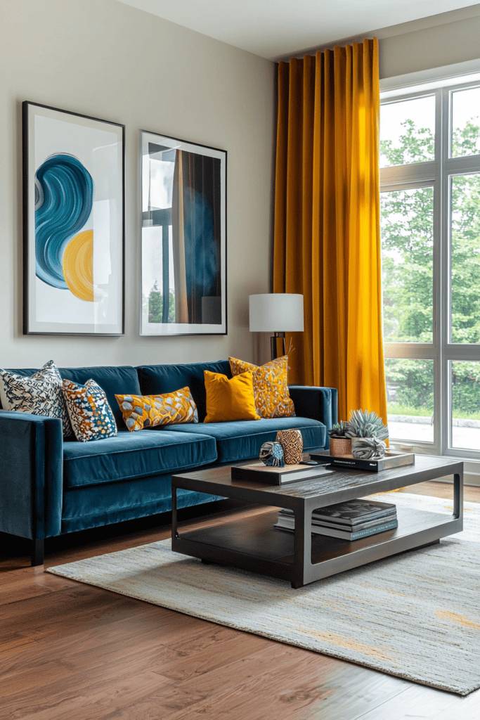 Adding metallic accents can beautifully enhance your apartment’s aesthetic, but don’t overlook the transformative power of colorful curtains. These vibrant textiles can instantly uplift your space, adding warmth and personality. Think bold colors like deep blues, rich greens, or sunny yellows that reflect your style. Layering fabrics can create depth; sheer curtains can soften harsh light while colorful drapes add drama. Don’t shy away from patterns—florals, geometrics, or even stripes can bring a playful touch. Consider how your curtain colors interact with your existing decor; they should complement, not clash. And remember, the right length can change the entire vibe—floor-length curtains can make ceilings feel higher, creating an airy atmosphere. So go ahead, play with colors and transform your apartment!