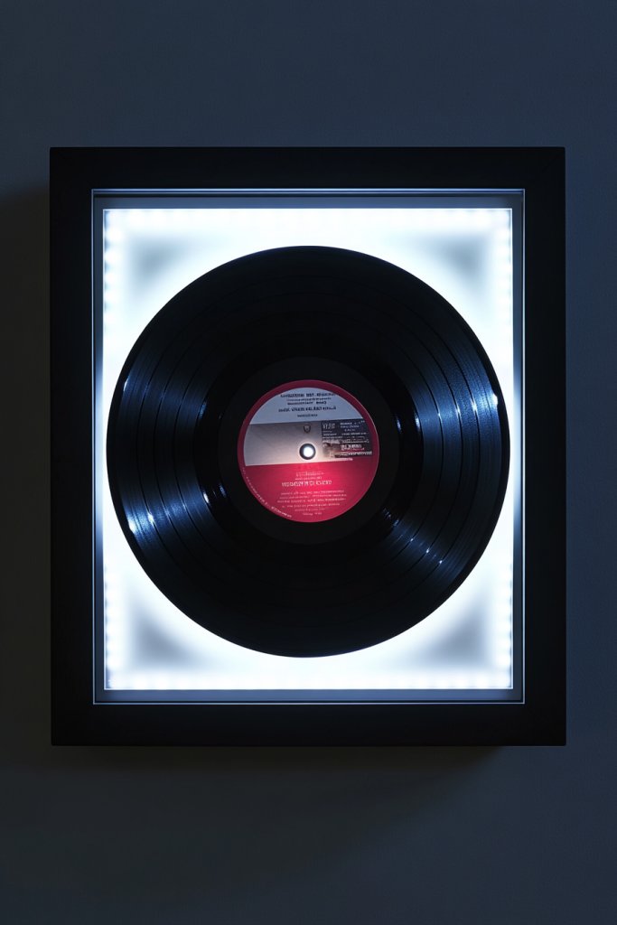 Want to make your musical decor truly stand out? Looking for a way to add a vibrant, glowing element to your walls? An LED-lit record frame combines the warmth of light with the charm of vinyl, creating an eye-catching centerpiece. It’s perfect for adding ambiance and a modern touch.