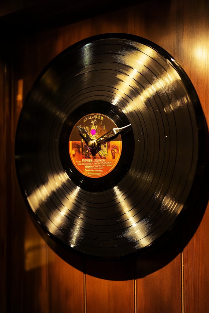 Personalize by adding a custom label or painting the edges of the record for a unique frame. Incorporate small decorative elements like metallic numerals or subtle LED lighting around the edges. You can also coordinate the clock color with your room’s color palette for a harmonious look. For a fun twist, use a record with a label from a favorite album or concert for extra personality.