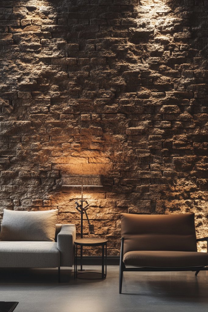 Picture panels that mimic weathered brick or rugged stone, with rough textures that invite touch. The layered surfaces catch light at different angles, creating shadows that enhance the visual interest. Imagine a fireplace wall with faux brick, paired with sleek modern furniture and warm lighting—an inviting, edgy vibe that feels both rustic and contemporary. It’s raw, authentic, and full of character.