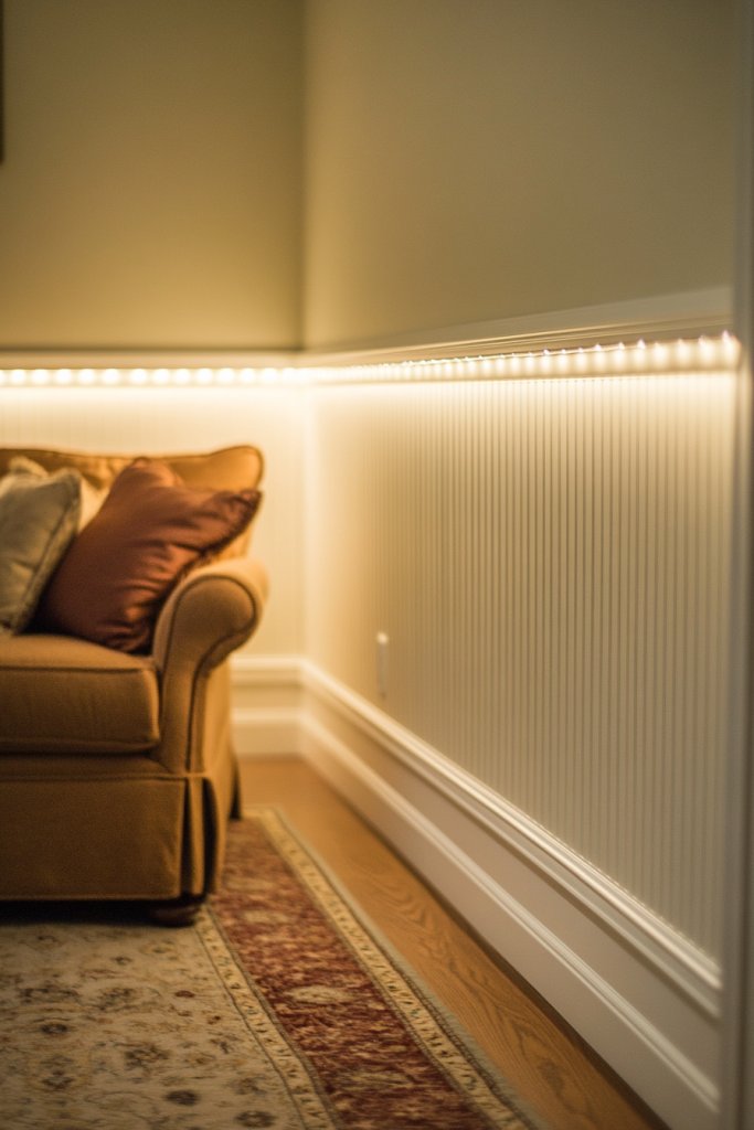 13. Wainscoting with Integrated Lighting for Ambient Glow