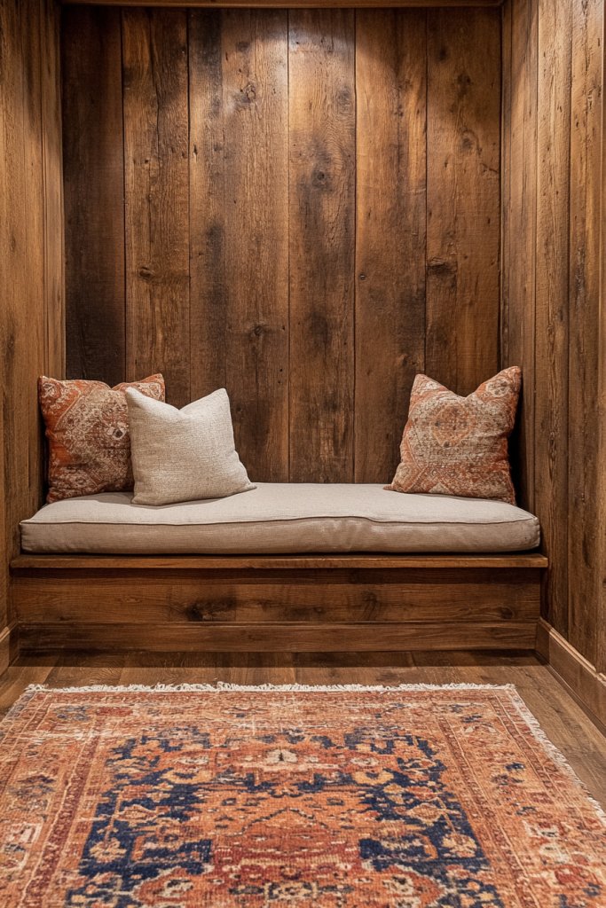 Mix different wood tones or add decorative metal brackets or vintage hardware for more authenticity. Incorporate textured textiles like knitted throws or woven baskets nearby for a layered, cozy feel. Display vintage signs or framed photos on the panels, but avoid artwork or modern decor that clashes with the rustic vibe. The goal is a warm, inviting, eco-conscious space.