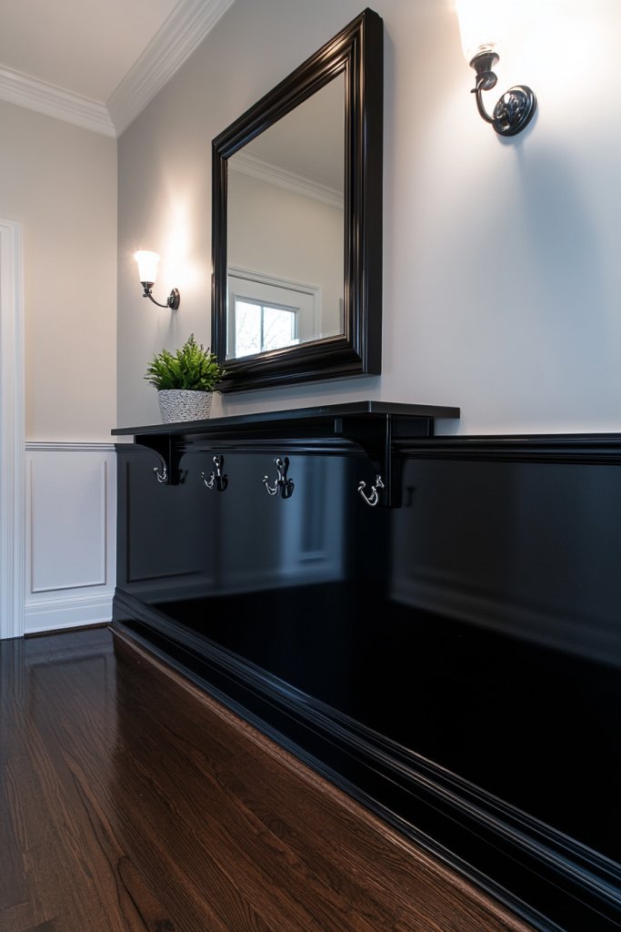 A glossy half-wall wainscoting instantly adds a modern, luxurious feel to your entryway. It’s a simple project that makes a big impact, giving your home a fresh, sophisticated vibe. With a bit of paint and some careful measuring, you can create a space that feels both stylish and welcoming. Your guests will be impressed from the moment they step inside.