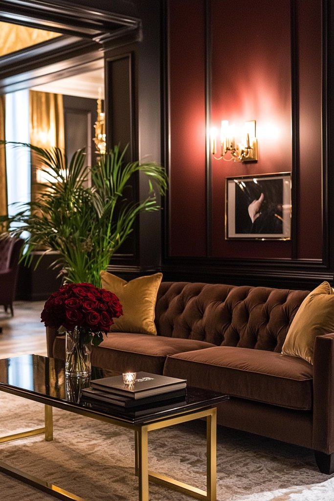 - Rich Burgundy envelops rooms in elegance and warmth, creating intimate settings for gatherings and quiet evenings.