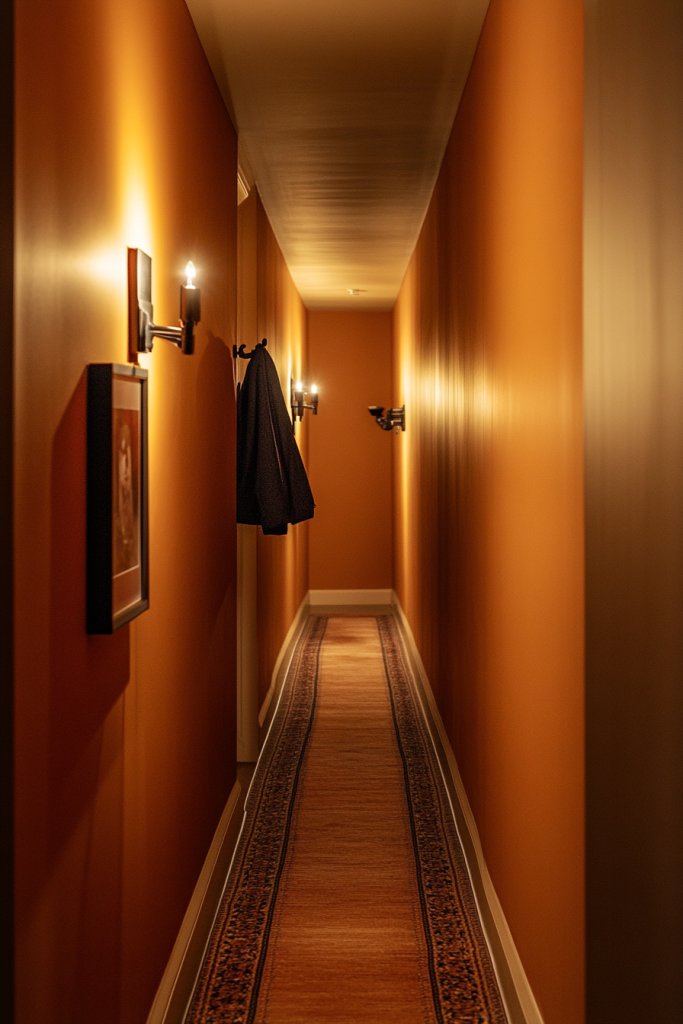 Amber ochre turns plain hallways into warm, inviting connectors within your home. It sets a friendly tone and makes the transition between rooms feel intentional. Trust your eye for layering warm textures and lighting—your hallway can become a signature feature of your decor. It’s a simple upgrade with a big impact.