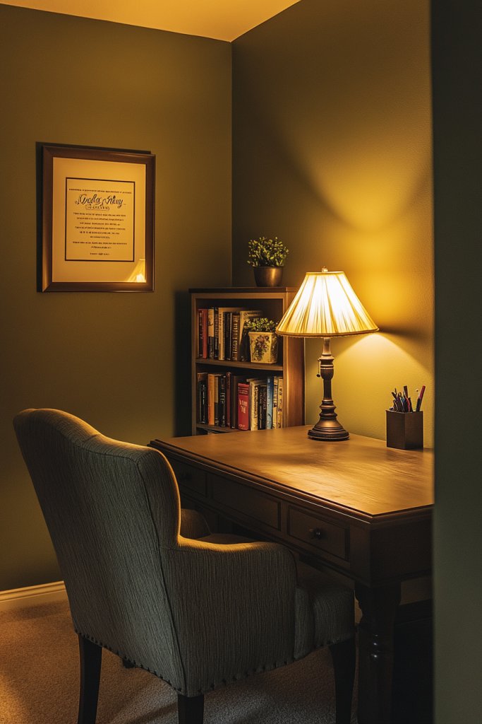 8. Warm Olive: Adding Depth and Calm to Home Offices or Reading Nooks