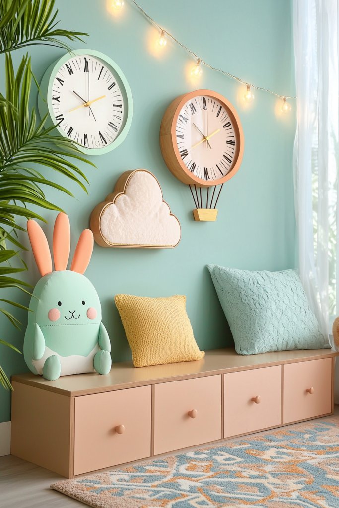 After you’ve infused your walls with personality through customized decals, it’s time to add a touch of timekeeping charm with whimsical clocks. These delightful timepieces can transform any space, offering a playful yet sophisticated focal point.