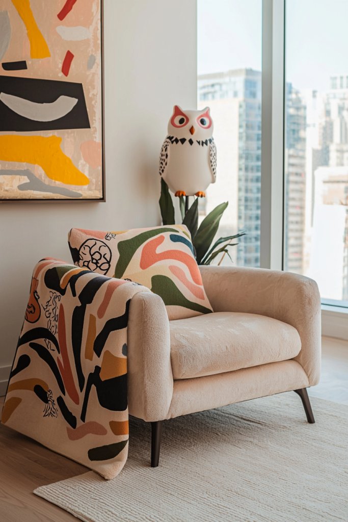 You can transform your space with whimsical decor that exudes playful sophistication. Think quirky wall art installations, playful furniture pieces, and vibrant accent pillows.