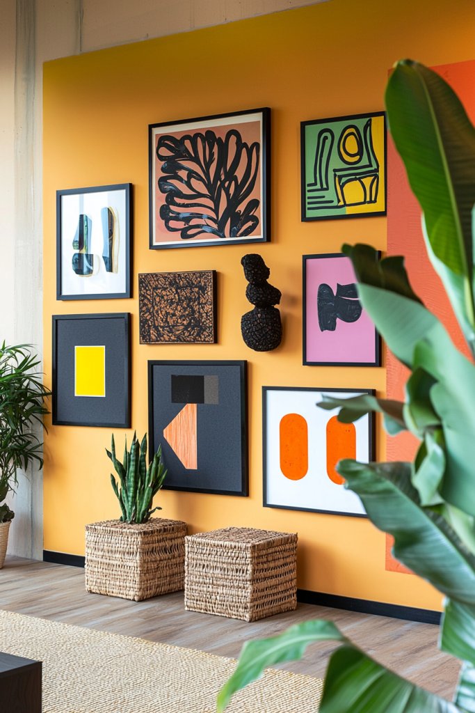 You could also opt for oversized art pieces that draw the eye while making a bold statement. Don’t shy away from mixing materials—wooden panels alongside metal art can create a fascinating contrast. For a playful touch, try incorporating 3D elements, such as shadow boxes filled with curiosities or whimsical sculptures that pop off the wall.