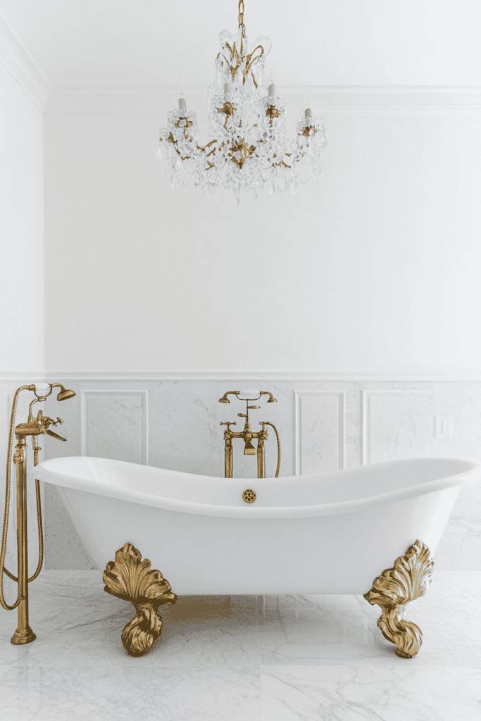11. Serene Sophistication: Classic White and Gold Clawfoot Tub