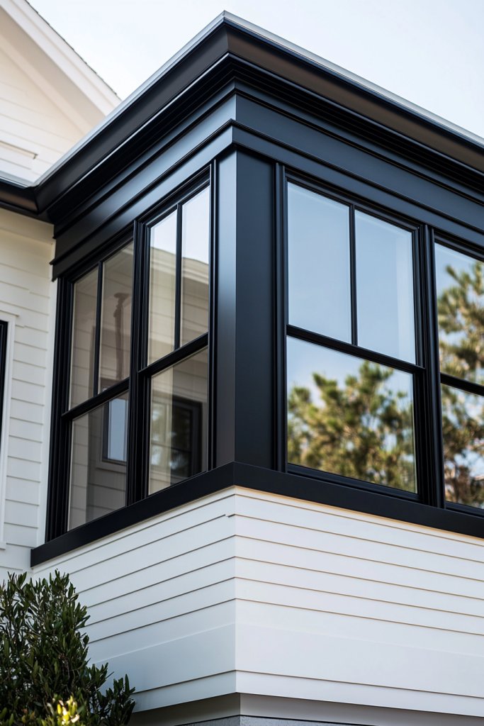 Looking to create a striking contrast that emphasizes your windows? Black exterior frames paired with crisp white interior trim provide a bold yet elegant look. This classic color combination offers visual depth and highlights architectural details.