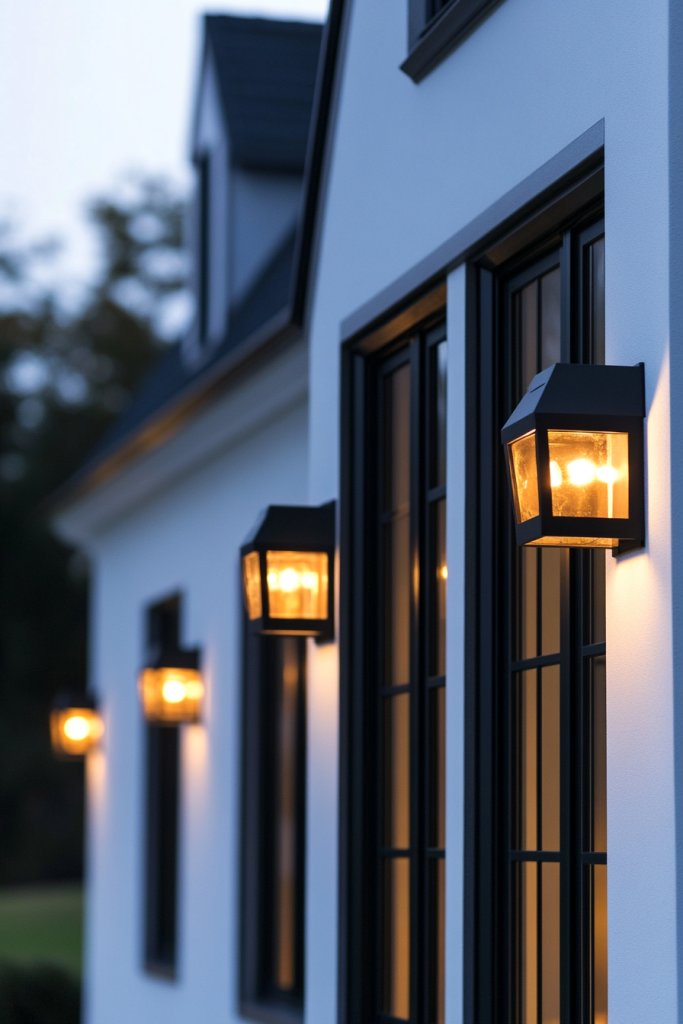 If you love a moody, high-end vibe, this lighting trick is your secret weapon. Picture subtle, hidden lights installed flush with the exterior wall, casting an upward or downward glow onto the black frames.