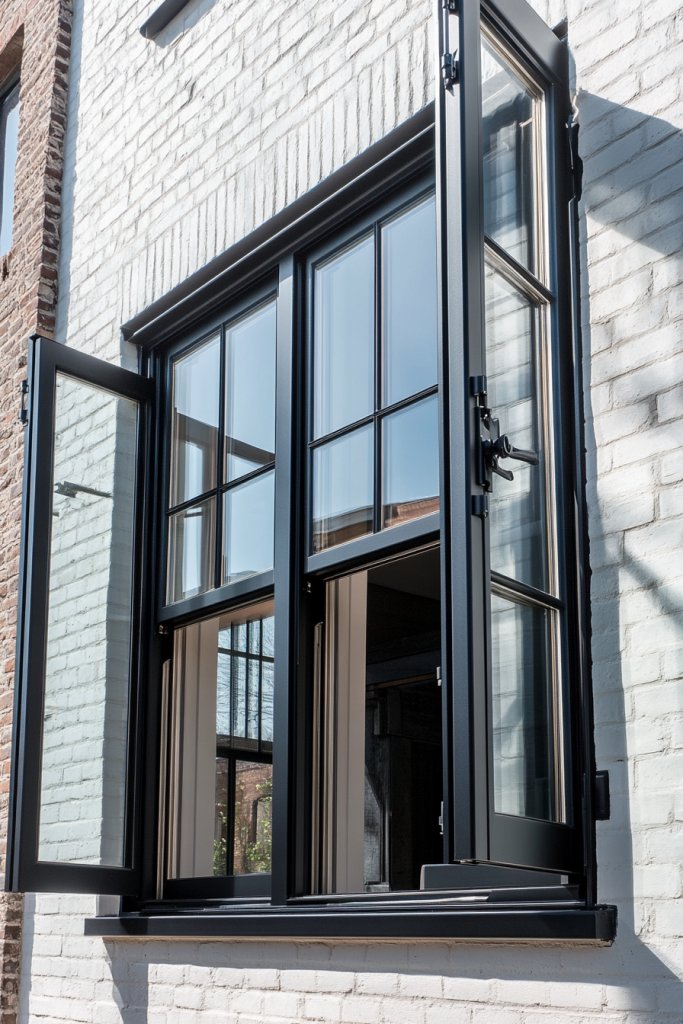 If you love heritage looks with a contemporary twist, this idea hits the sweet spot. Imagine crisp black window frames accented with white shutters that swing open to reveal glimpses of the outdoors.