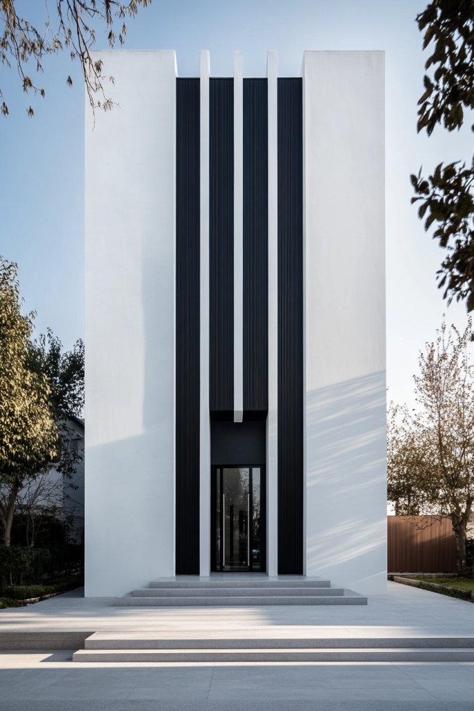 Ever wish your house looked taller and more striking? Vertical black window strips are a simple trick to elongate the appearance of your home’s facade. They add a dramatic vertical rhythm that draws the eye upward, making even modest homes look grander.