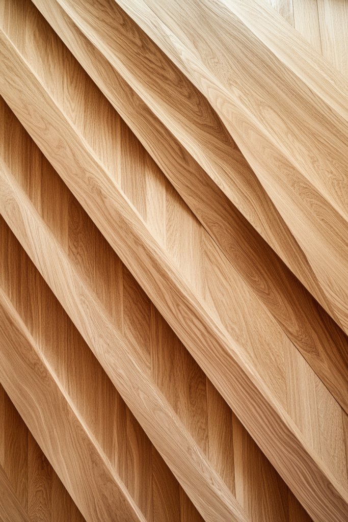 The alternating angles draw your gaze across the wall, creating a sense of rhythm and flow. The subtle color palette reflects light, making the room feel larger and more inviting.