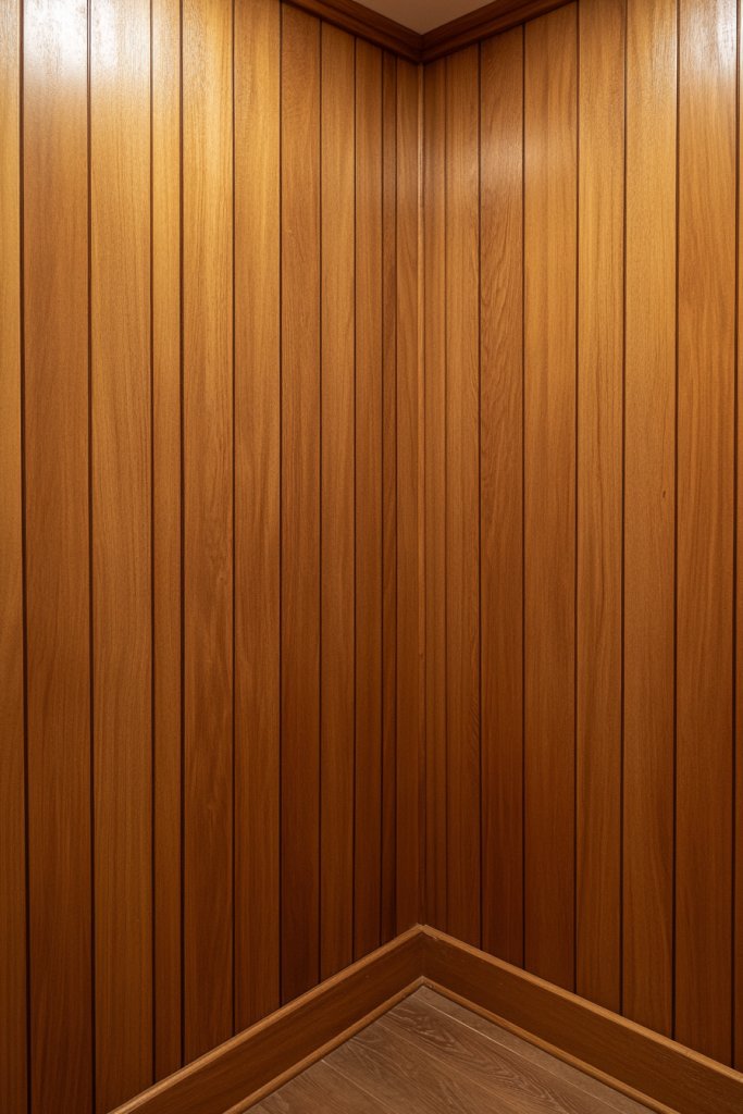 Finish with a protective sealant that enhances the wood’s natural grain and prevents warping. For a DIY-friendly project, adhesive strips or tongue-and-groove panels are excellent options.