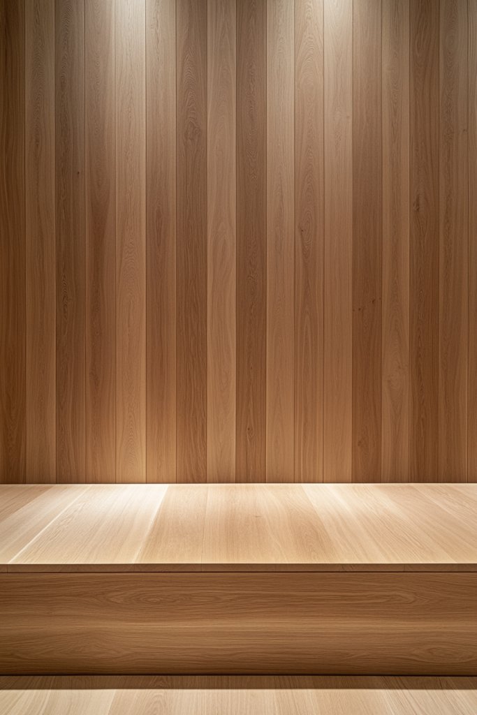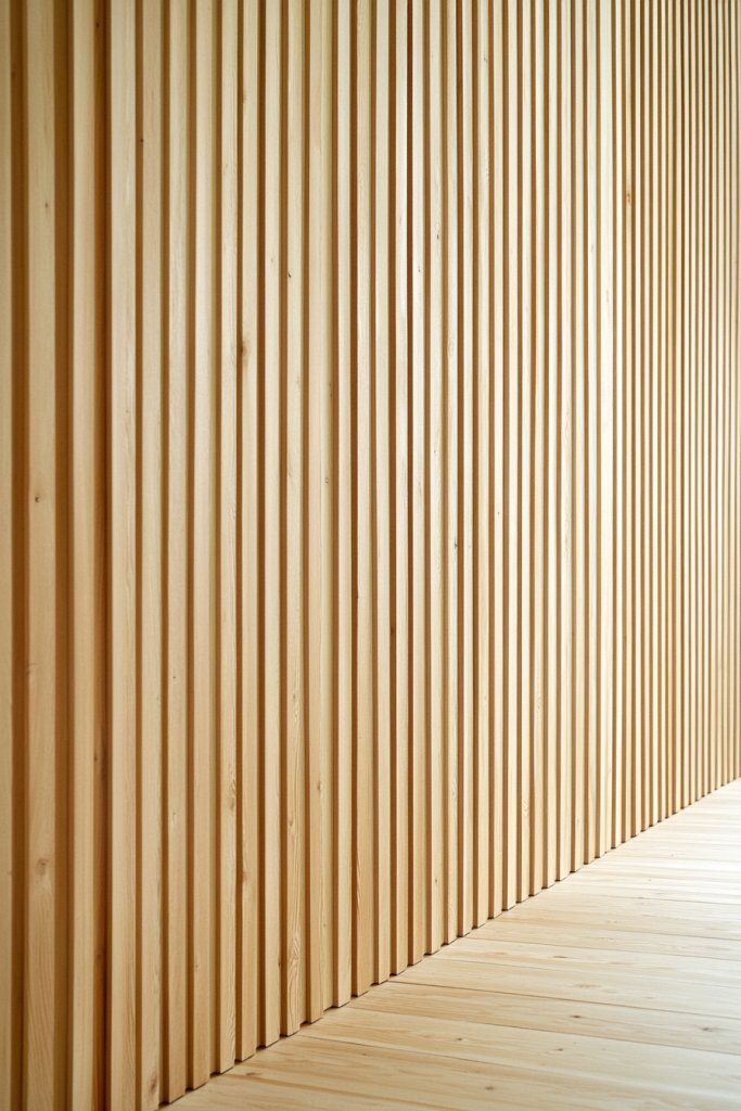 Picture thin, sleek wooden strips running from floor to ceiling, creating a continuous, uninterrupted line. The vertical orientation draws your eye upward, giving an illusion of height that’s almost hypnotic.