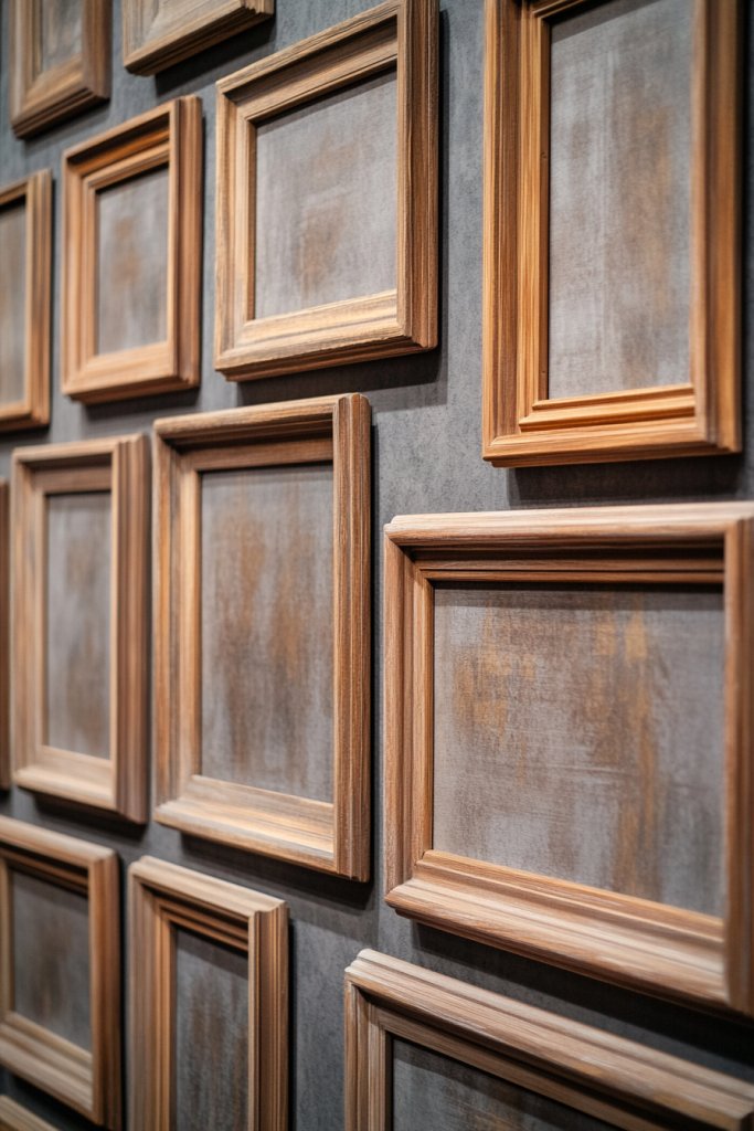 Want to turn your wall into a gallery of textures and craftsmanship? Layered wooden frames create a sophisticated, artistic effect that adds depth and dimension. It’s perfect for showcasing your love of woodworking and design.