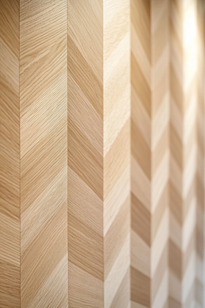 If your current walls are a bit dull, this pattern can inject energy and a sense of movement. Imagine pale, natural wood planks arranged in a precise chevron or herringbone pattern.