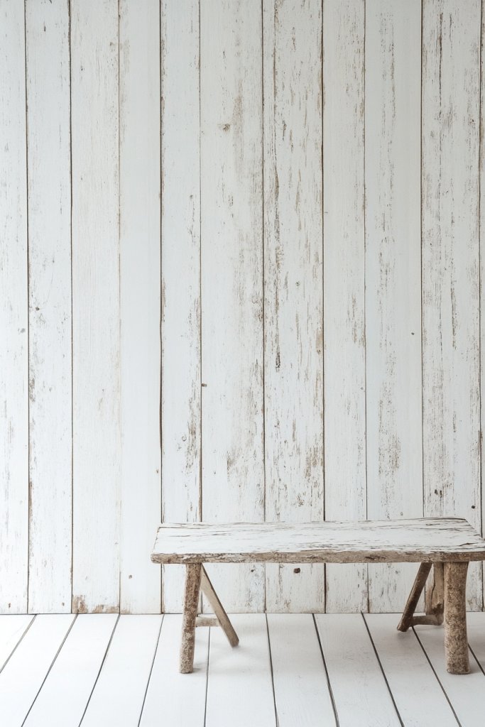 You can opt for a pure white or a slightly tinted wash—think soft blues or grays—to match your decor. This technique adapts well in bedrooms, bathrooms, or living rooms, especially when complemented by driftwood-inspired accessories or nautical accents.
