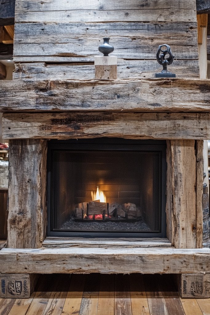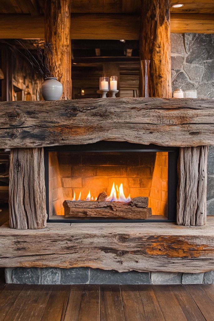 1. Reclaimed Driftwood Mantel for Rustic Charm