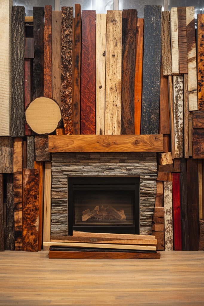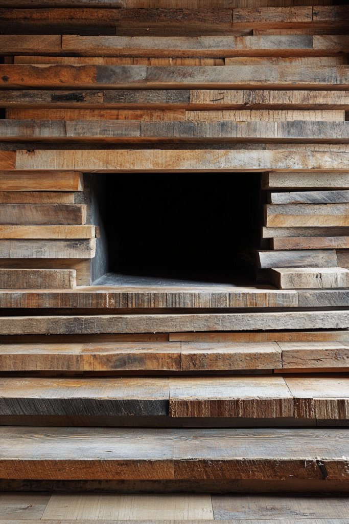 Multi-textured layered wood demonstrates bold creativity and mastery of natural materials. It turns your fireplace into a piece of living art. Creating and installing such a feature boosts confidence in mixing different textures and styles, inspiring ongoing experimentation with natural elements and craftsmanship.