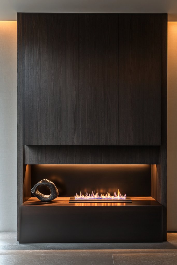 A blackened timber mantel exudes confidence and modern edge, transforming your fireplace into a focal point. It shows that bold choices can elevate your space dramatically. Installing and styling such a piece boosts your confidence in making daring decor decisions that pay off visually.