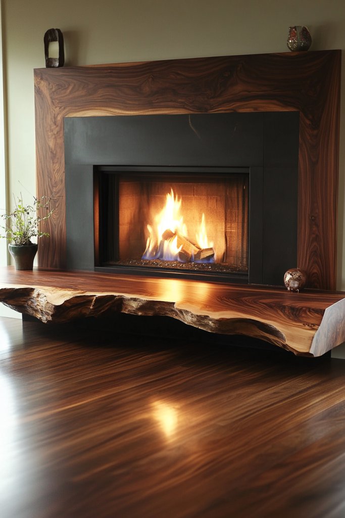 2. Live-Edge Walnut Mantel with Organic Silhouette