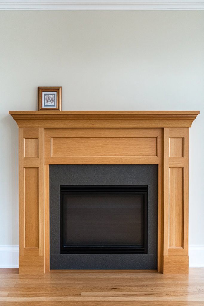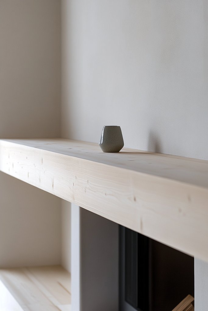 3. Minimalist Light-Stained Pine Mantel for Contemporary Calm