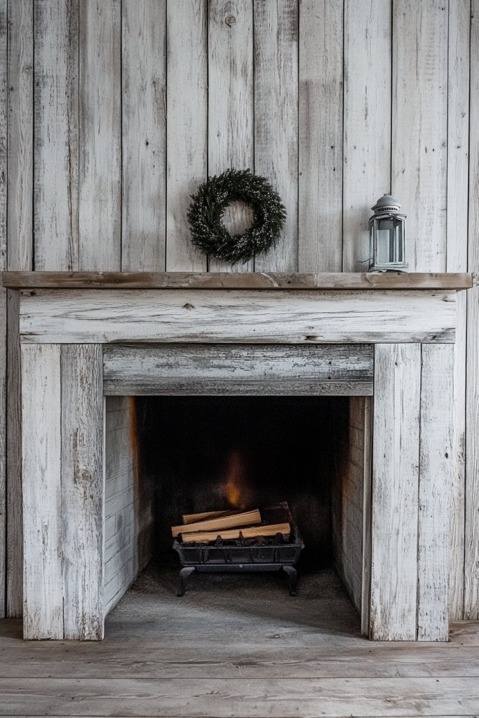 Weathered barn wood with whitewash embodies rustic charm with a light, airy twist. It creates a warm, inviting focal point that’s full of character. Installing this style shows your knack for blending vintage and modern aesthetics, inspiring confidence in rustic DIY projects and decor ideas.