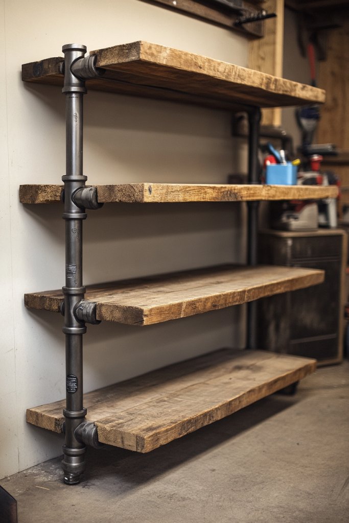 1. Industrial Pipe Shelving with Reclaimed Wood Planks