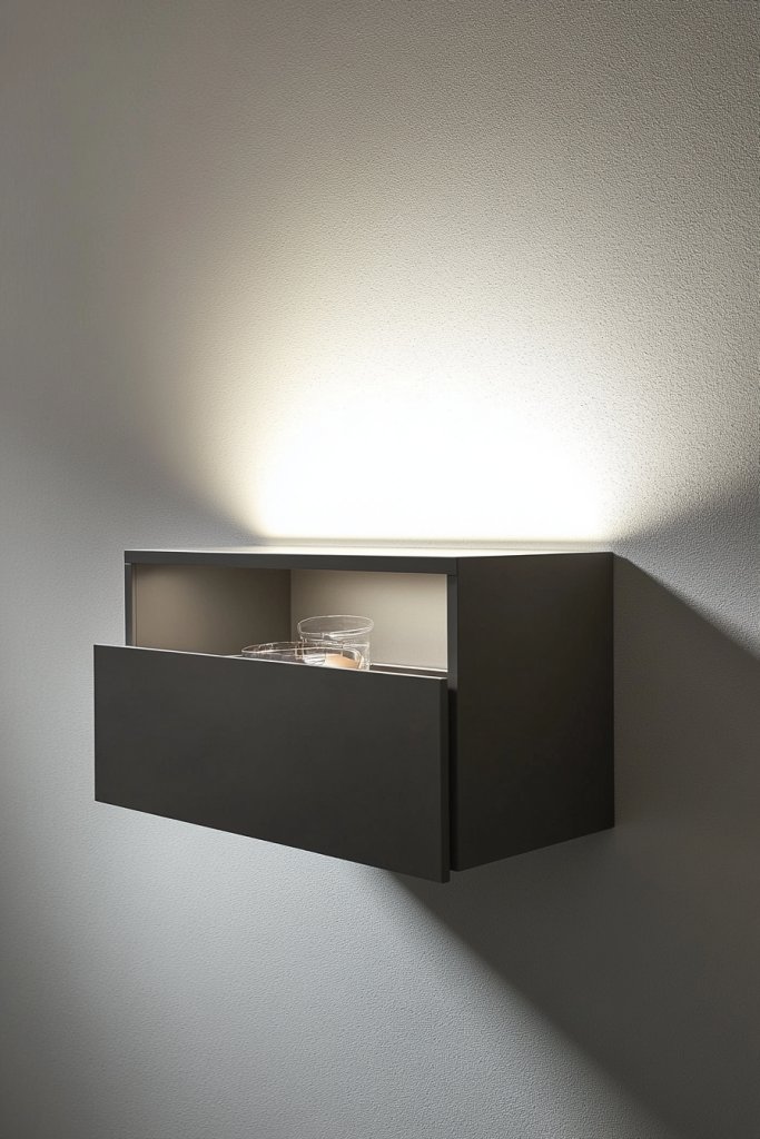 Are you tired of visual clutter but need to store sensitive or delicate items? Floating box shelves with drop-front doors combine sleek design with hidden storage. They protect your supplies from dust and damage while maintaining a minimalist aesthetic. It’s the perfect way to keep your workspace looking tidy and professional.