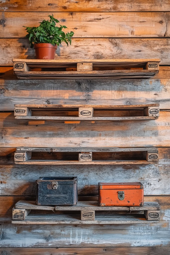 6. Reclaimed Pallet Shelves for a Rustic Charm